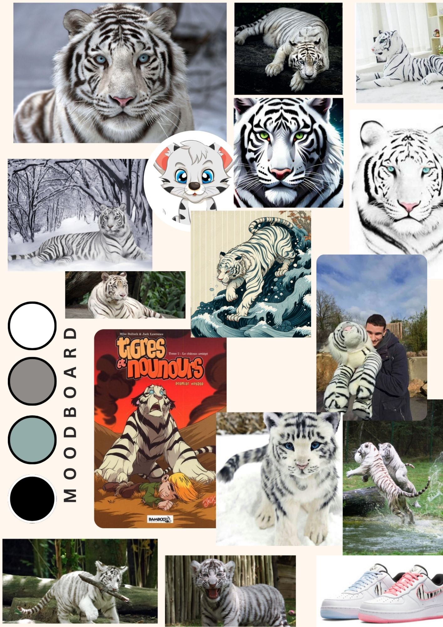 J’ai cherché des images liées à cet animal, des images du tigre blanc mais aussi des images d’objets en rapport avec cet animal.